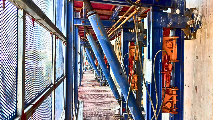 It is an advanced construction technique consists of electric-hoisted self-climbing scaffolding integrated with hydraulic climbing mechanism. ACS is very much sophisticated system which is loaded on the bearing device attached in concrete.